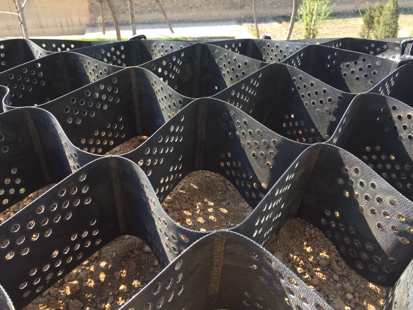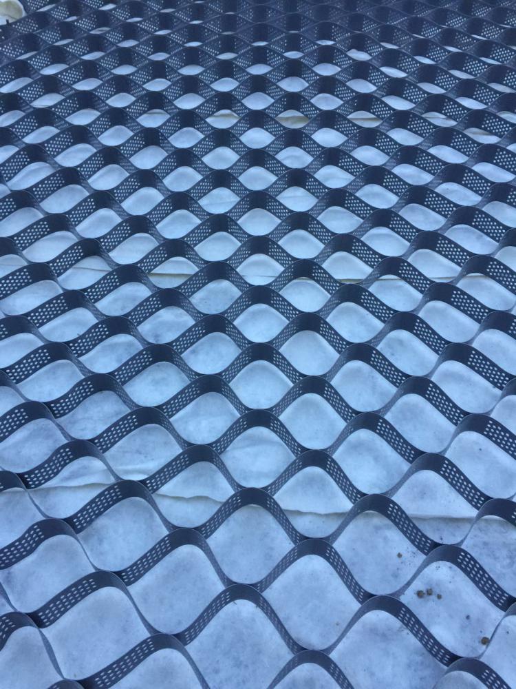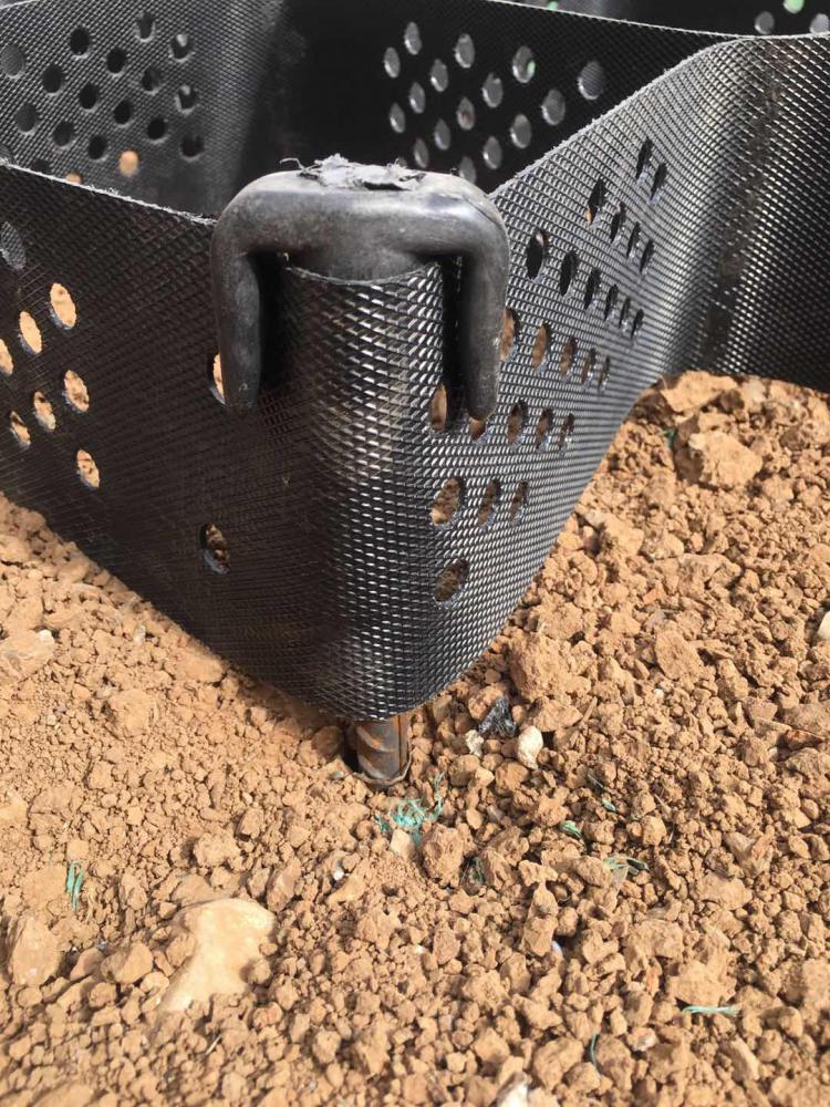 3、通過植被根係把土工格室、上下層土壤、無紡土工布等結合成一個整體的多層防護結構。解決坡麵表土穩定與坡麵保護問題,土工格室邊坡穩定與保護係統能隔離、加強並坡麵上方土層及填料,從而控製由水力和重力造成的坡體向下運動和滑移。